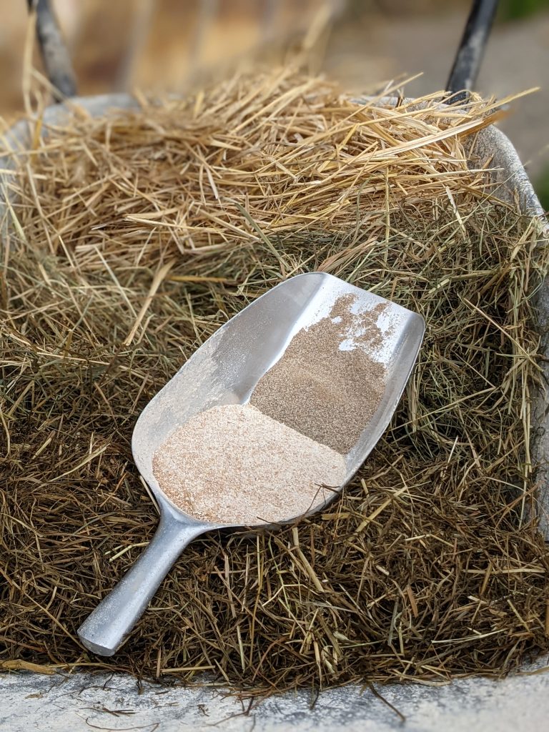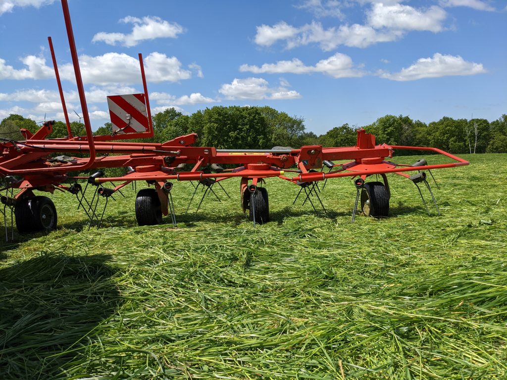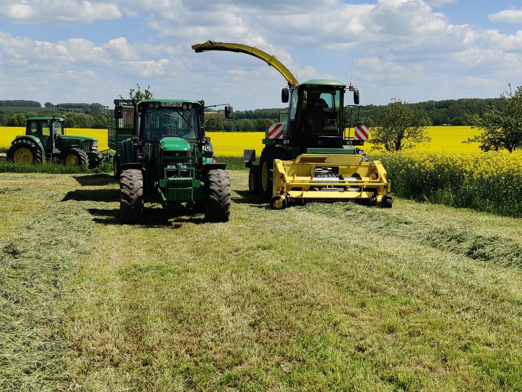 Silage wird von dem Ackerfutter (Kleegras) hergestellt und Heu gewinnen wir von unserem Grünland.
