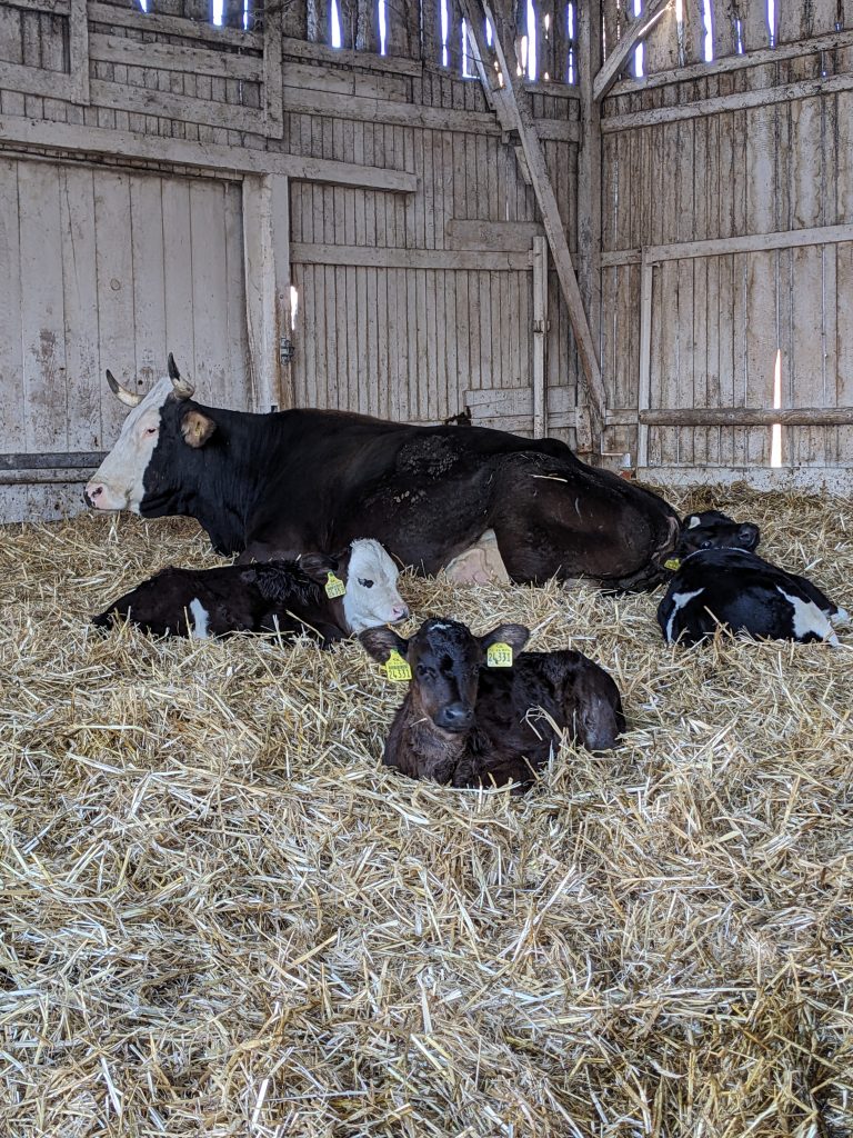 von den ehemaligen 60 Milchkühe sind 15 Tiere als Grundstock für unsere neue Mutterkuhherde im Betrieb geblieben. Die Kälber bleiben nun bei Ihren Müttern. Außerdem kommen noch 15 Färsen dazu.